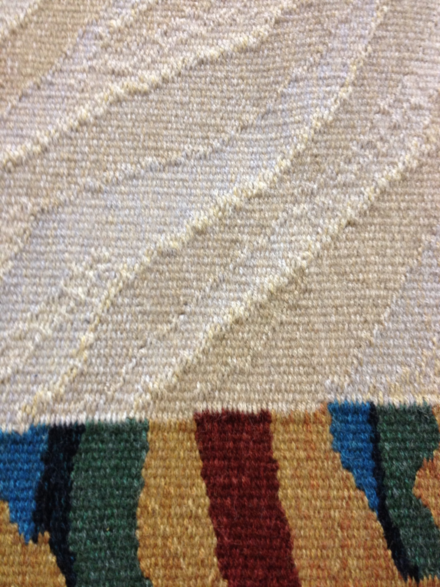 She creates texture in some areas by skipping over some warp threads. I’m filing this idea away.